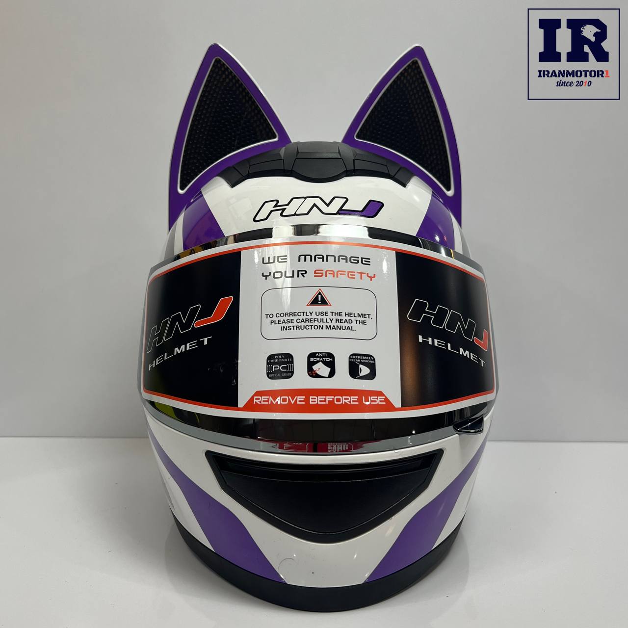 کلاه کاسکت دخترانه خرگوشی (گوش گربه ای) HNJ اچ ان جی سفید بنفش