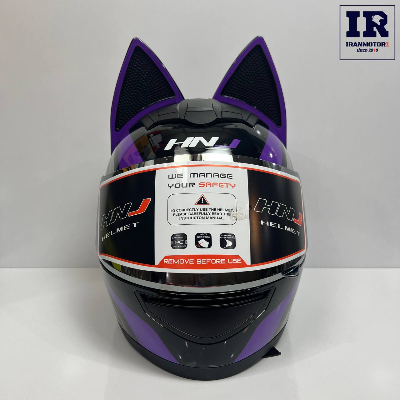 کلاه کاسکت دخترانه خرگوشی (گوش گربه ای) HNJ اچ ان جی مشکی بنفش