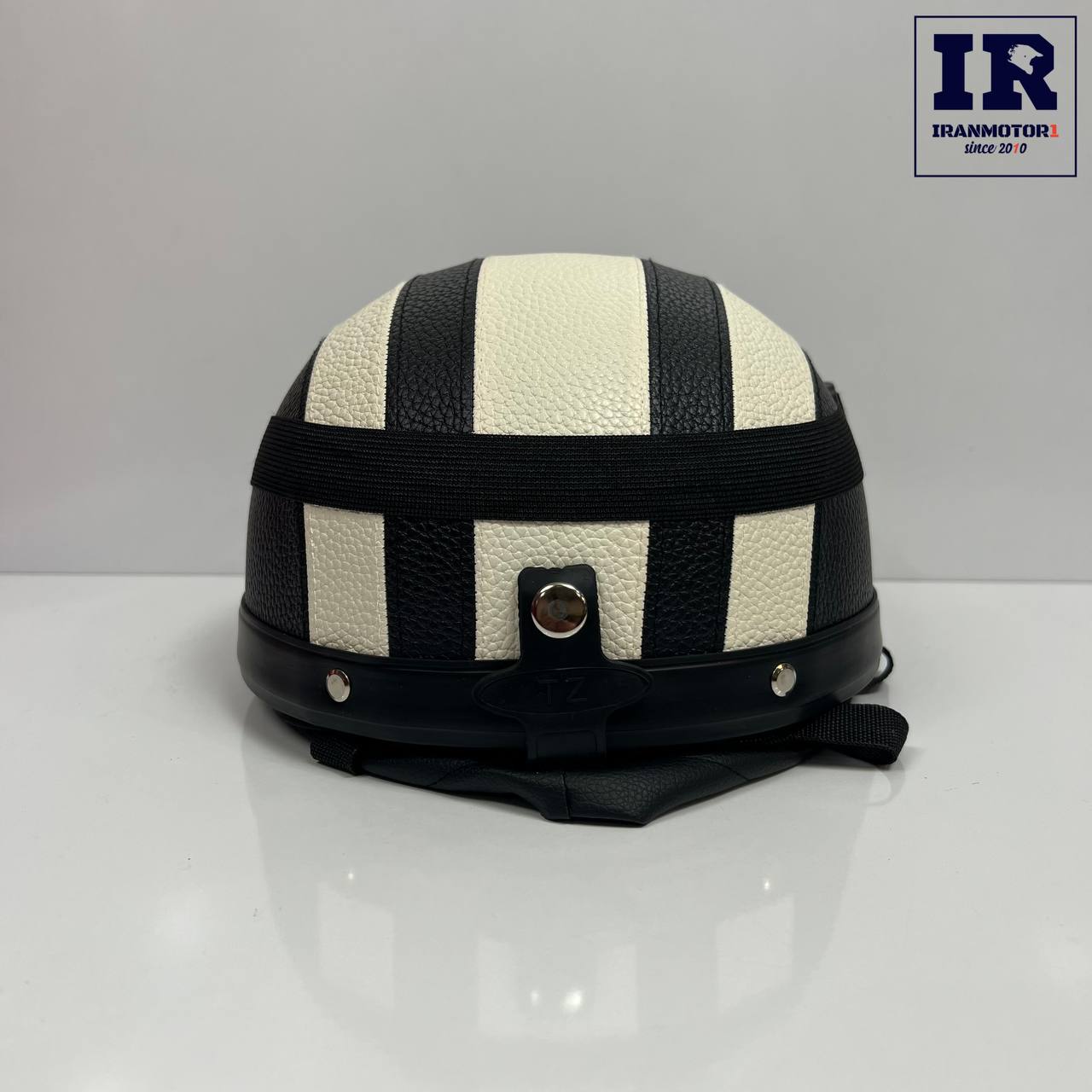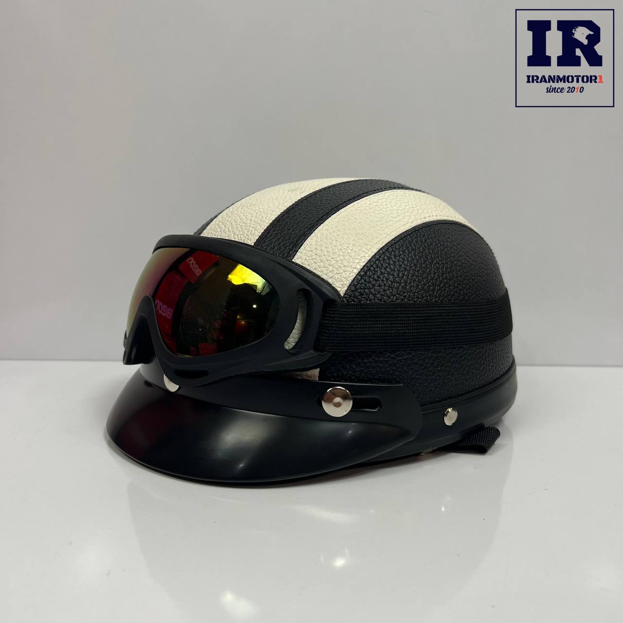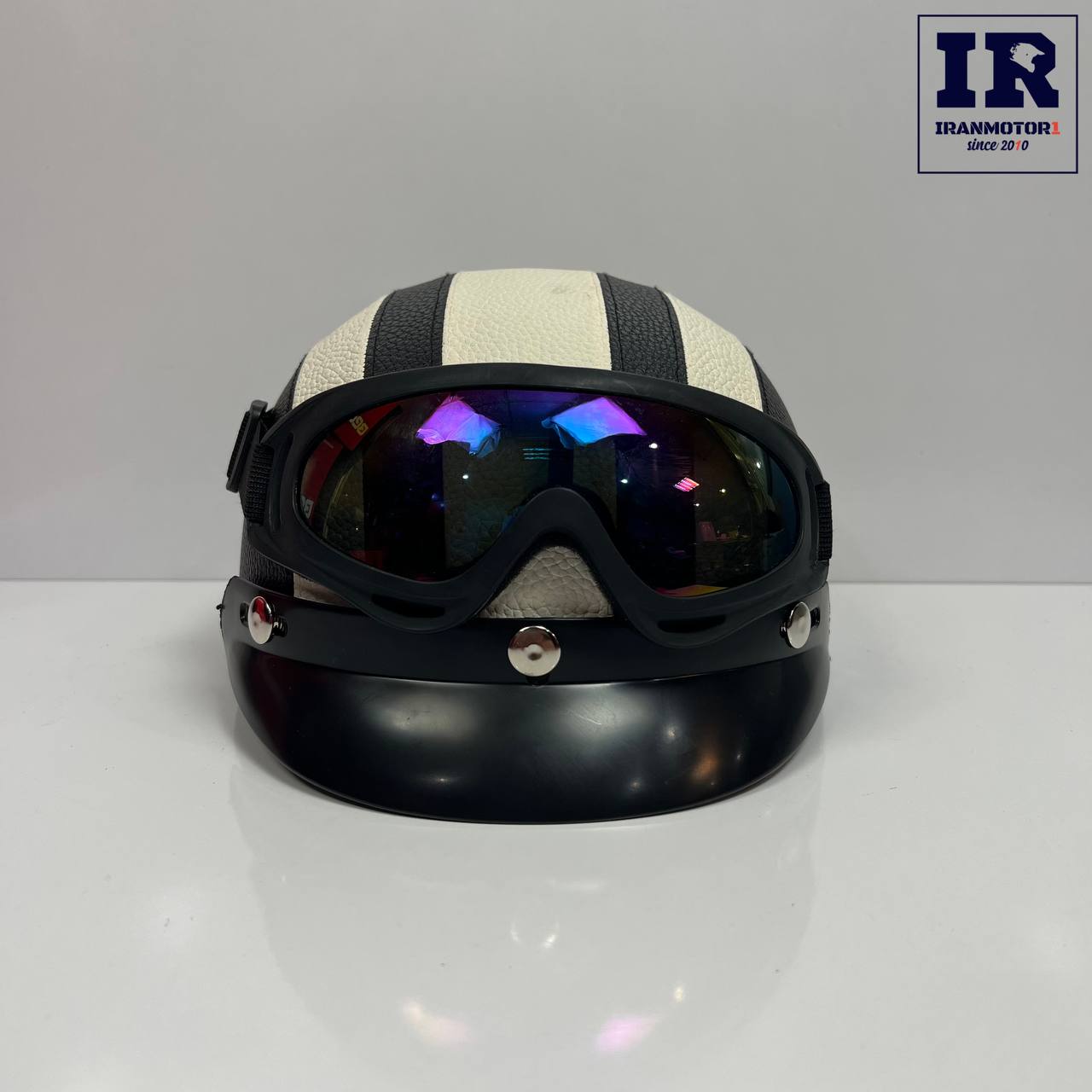 کلاه کاسکت وسپایی نیمه چرمی مشکی سفید عینک دار