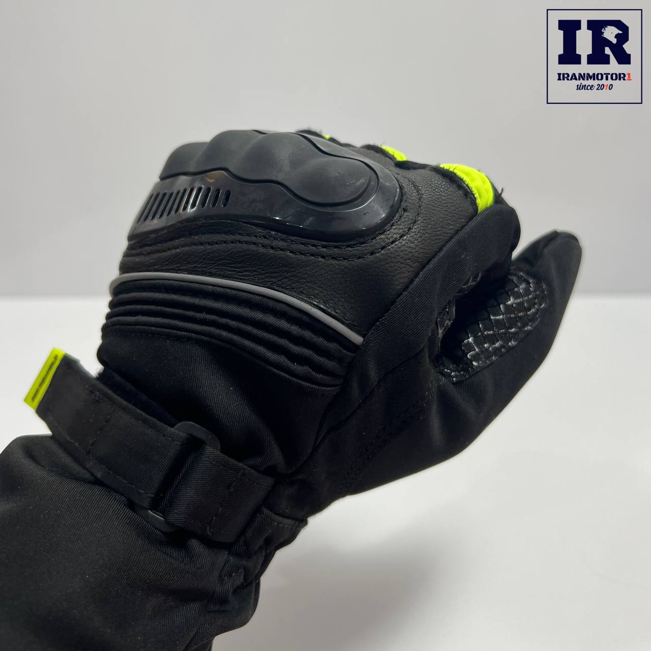 جنس بیرونی آن در برابر نفوذ باد و باران مقاومت بالایی از خود نشان می‌دهد و از خیس شدن و سرد شدن دست‌ها در طول مسیر جلوگیری می‌کند. وجود سیکن‌های ضربه‌گیر در نقاط کلیدی، ایمنی دست‌ها را در برابر ضربات احتمالی افزایش می‌دهد و اطمینان خاطر بیشتری را برای راکب به ارمغان می‌آورد. لایه داخلی از جنس پلی‌استر، گرمای مطلوب و حس راحتی را برای دستان شما فراهم می‌کند تا در طول مسیرهای طولانی نیز احساس خستگی نکنید. علاوه بر این، قابلیت تاچ گوشی امکان استفاده آسان از دستگاه‌های هوشمند را بدون نیاز به درآوردن دستکش فراهم می‌آورد که یک مزیت کاربردی برای موتورسواران است.
